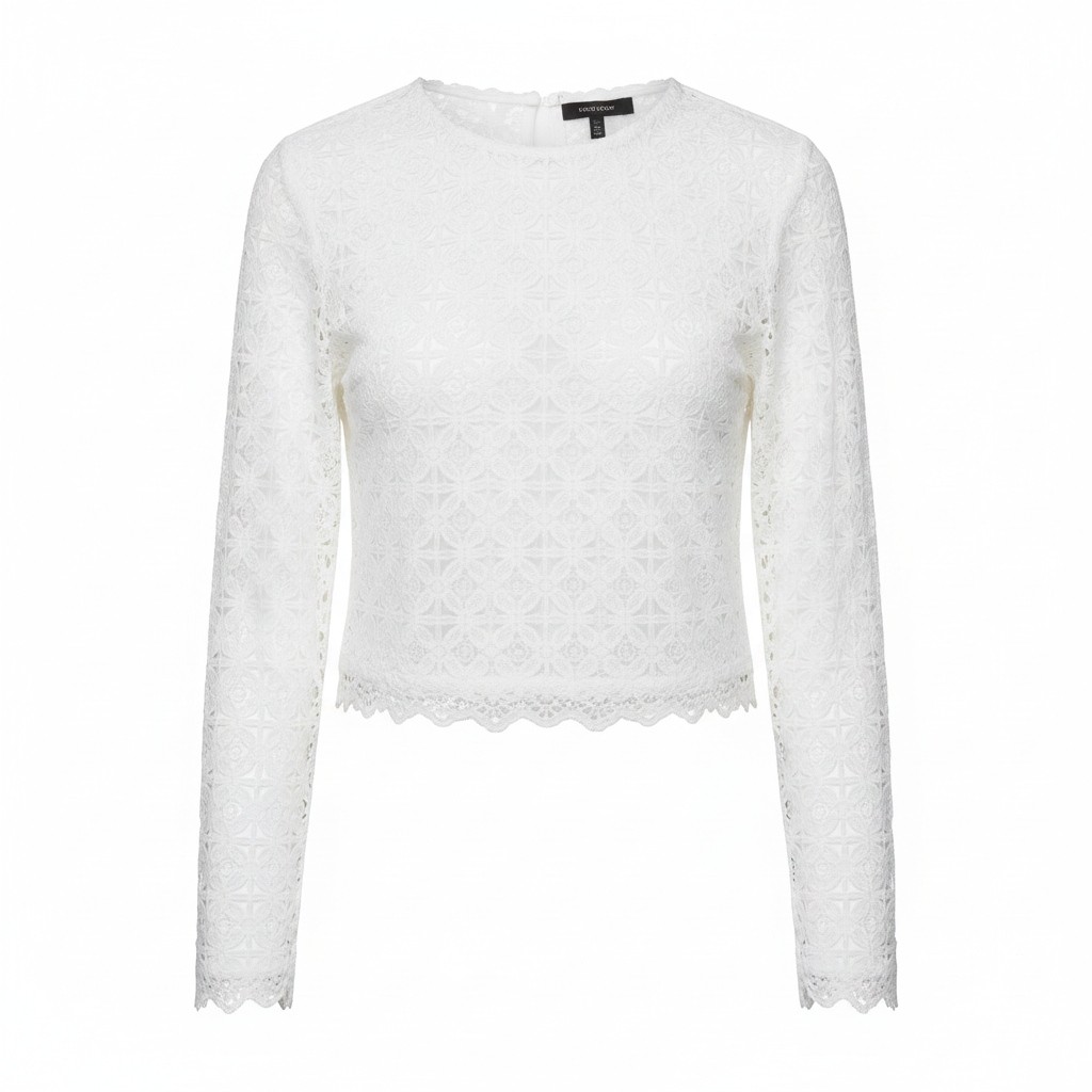 Elegante blusa corta de manga larga con encaje para mujer