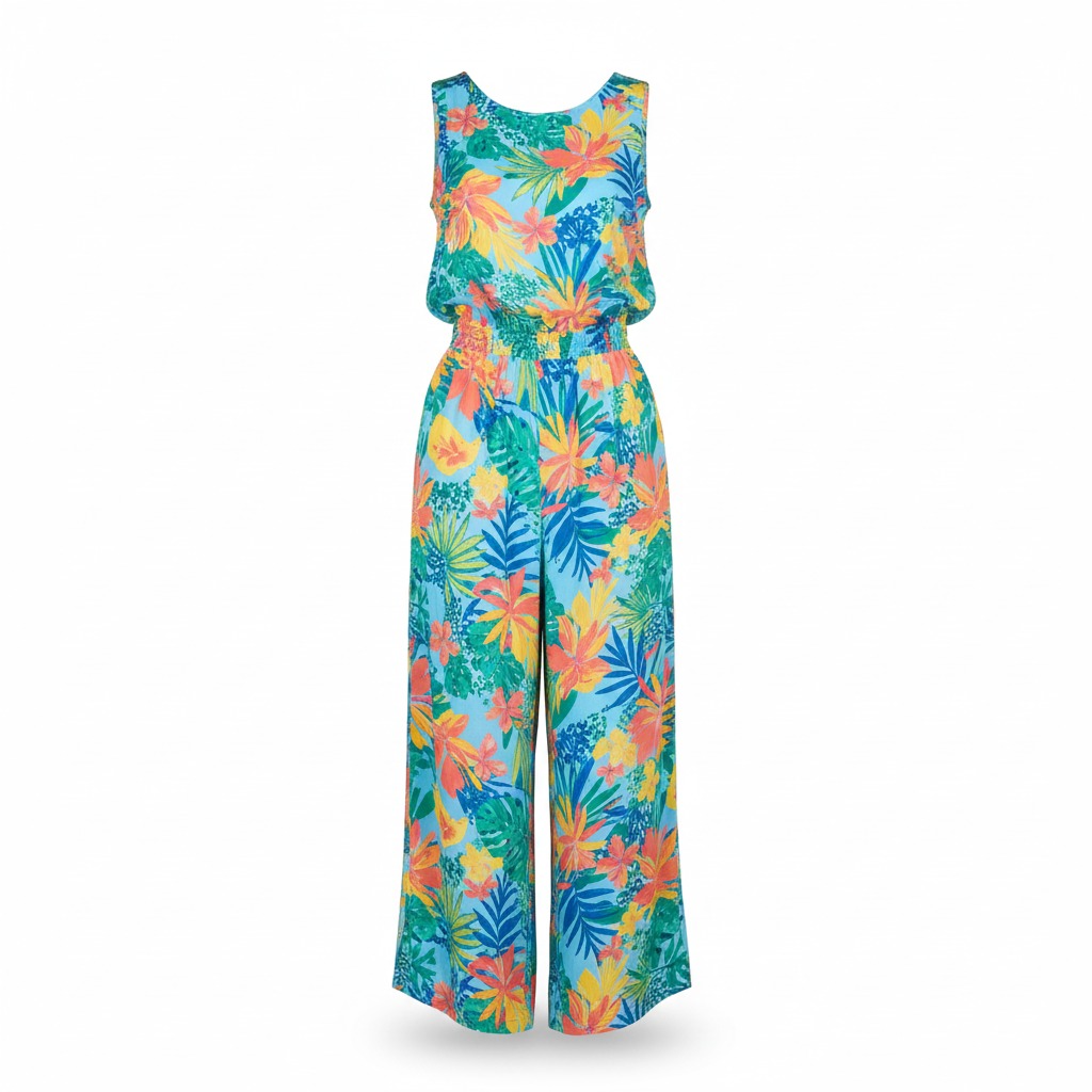 Este mono de pierna ancha combina un estilo refinado con un diseño adecuado para el clima fresco. El corte sin mangas y la cintura fruncida ofrecen un ajuste favorecedor, mientras que la silueta relajada fluye con naturalidad. El estampado vibrante añade un toque distintivo, lo que lo convierte en una opción destacada para tu armario de verano.